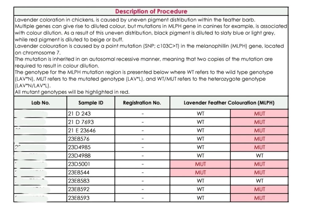 Interpreting Results for the Lavender Feather Colouration Gene (MLPH)