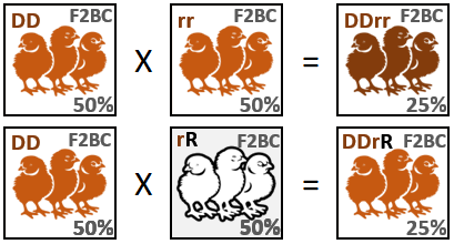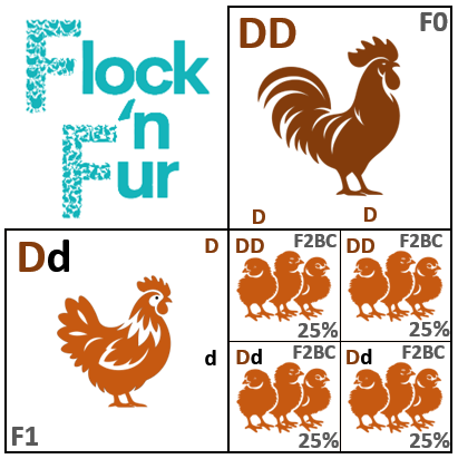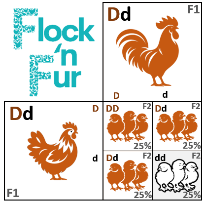‘DD‘: Possessing two copies (homozygous) of a fictitious dominant gene for brown eggshells.