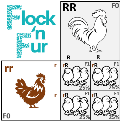 ‘rr‘: Possessing two copies (homozygous) of a fictitious recessive gene for brown eggshells.