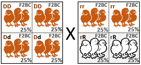 ‘d‘ represents a fictitious recessive gene for white eggshells.