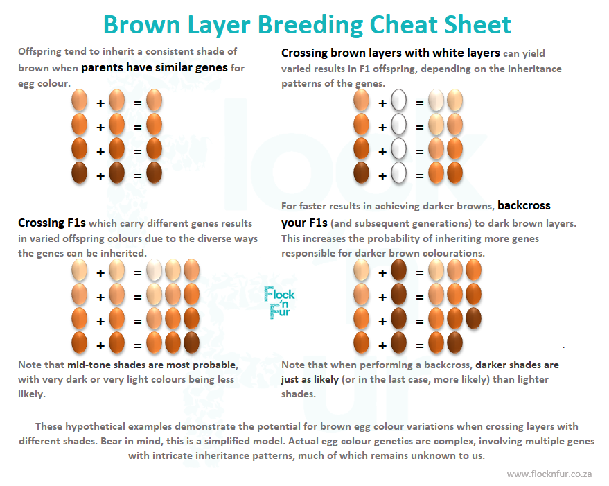 While crossing your first-generation (F1) chickens might seem like a way to increase dark egg layers, it’s not the most efficient strategy. Approximately 19% of their offspring will lay dark eggs, but only 6% of those will reliably produce hens with the same trait. Unfortunately, we don’t have easy ways to test for the specific genes responsible for egg colour, making this more of a theoretical exercise than a practical breeding approach