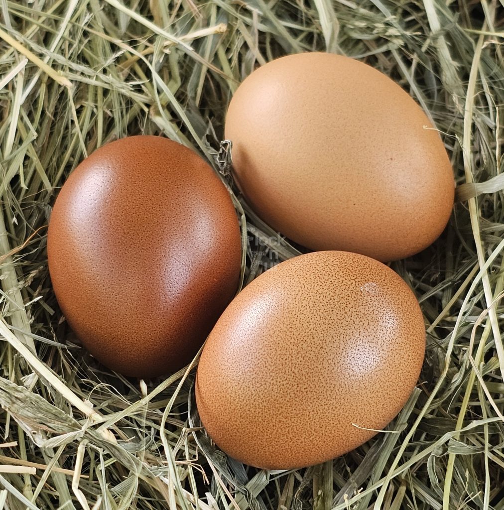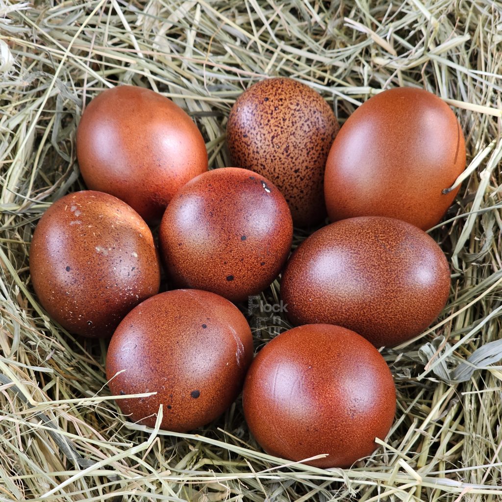 Although we do not currently have purple eggs, we are working on a project aimed at producing chickens that can lay purple eggs. By crossing Marans, Wyandottes, and incorporating heavy blooms, we hope to introduce purple eggs. The objective is to breed a line that reliably produces purple eggs. Given their nature, achieving 100% purple eggs is impossible, but we aspire to develop a line where all hens produce a purple egg at some point.