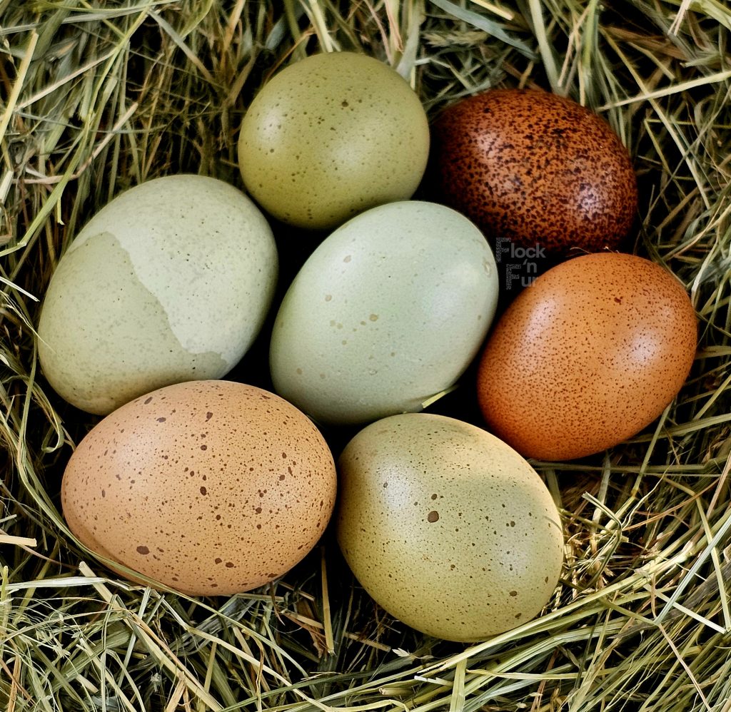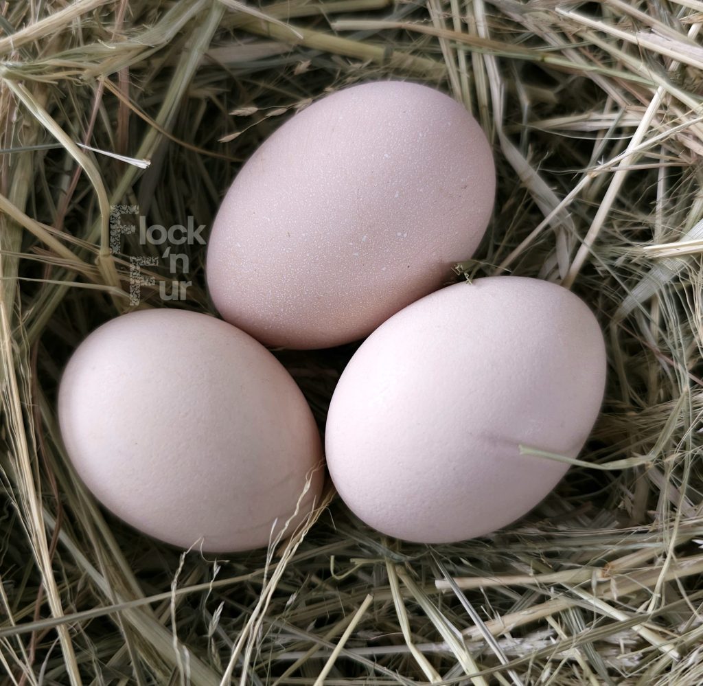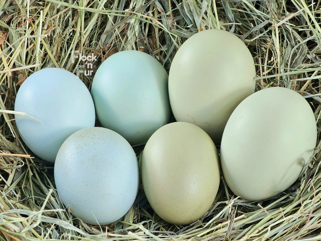 Blue layers, or sometimes blue-green layers, include Easter Eggers and Ameraucanas that do not conform to the breed standards. However, a significant portion, possibly the majority, exhibit variations in egg colour, fluctuating from green to blue over time. This variability is influenced by factors such as the bloom and other deposits causing a tint on the eggshell and is considered a genetic characteristic of our flock. It is noteworthy that these can possess either one or two copies of the blue egg gene.