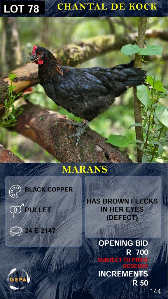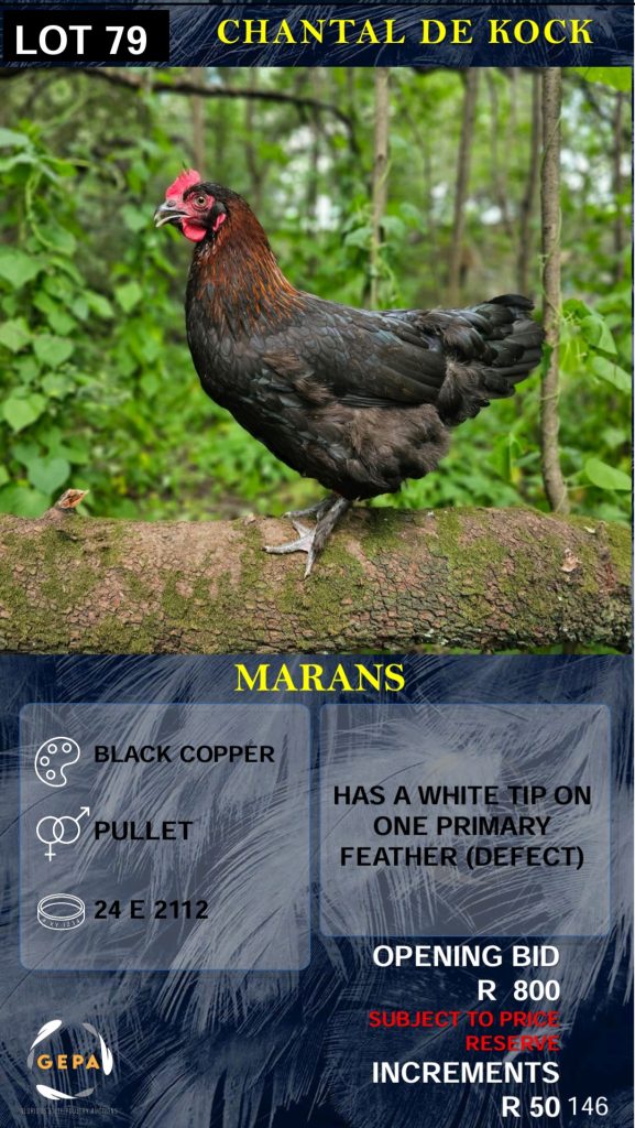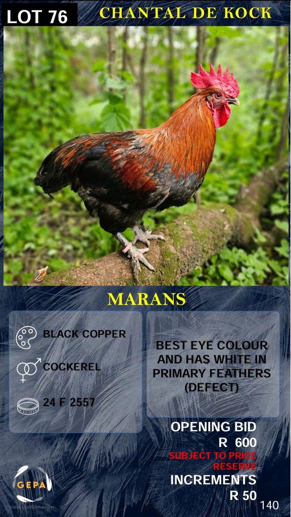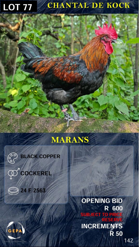 We will exclusively use Glorious Elite Poultry Auctions (GEPA) as our auction house. The GEPA auctions are held on WhatsApp on Saturdays.